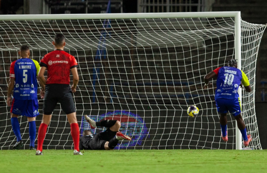 Una mala comunicación entre la última línea carabobeña y su cancerbero propició la apertura de la pizarra, en una pelota que no pudo ser despejada por la escasa coordinación y terminó siendo atrapada por Yeiber Murillo, para poder empujarla con el arco a disposición.